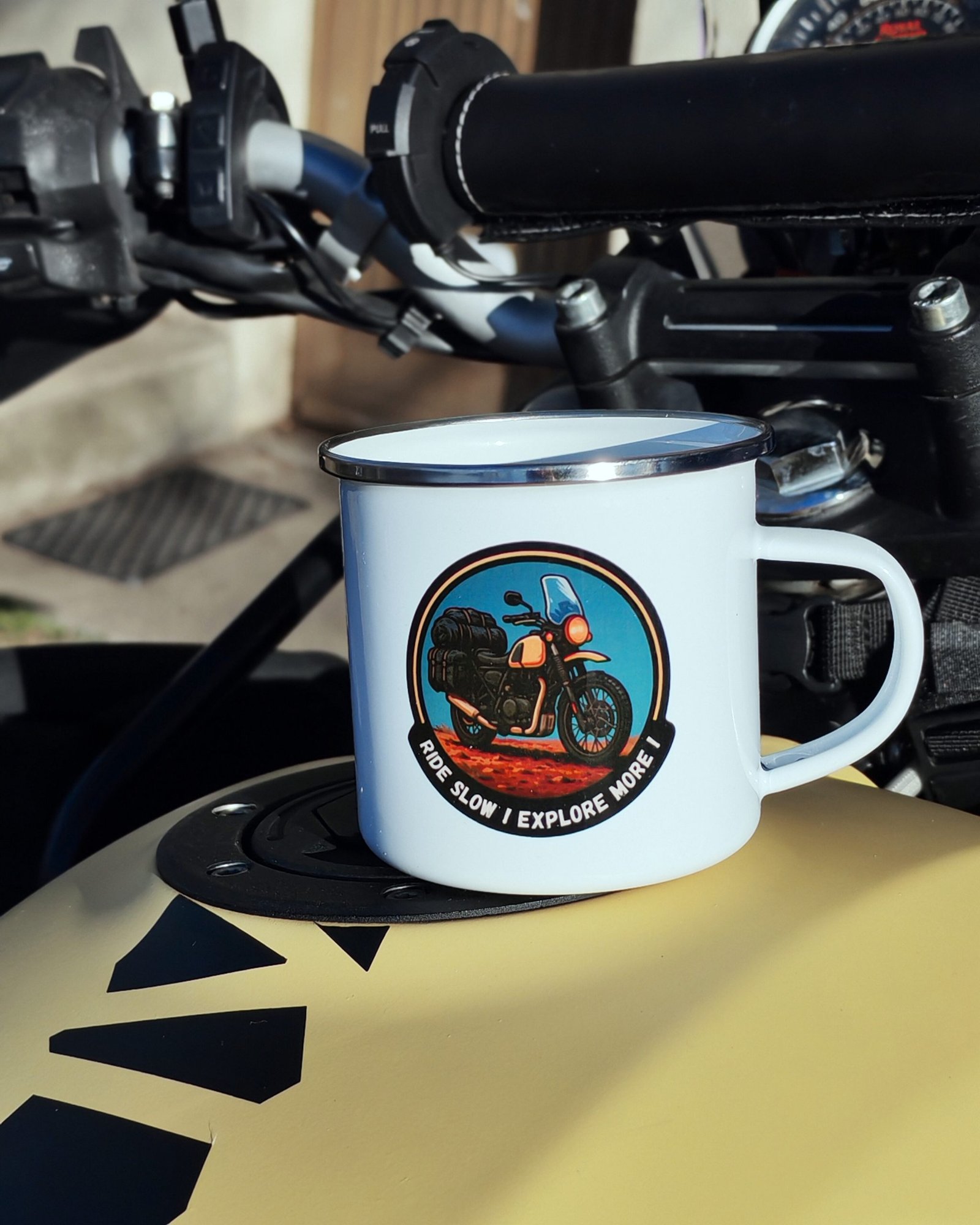 Mug métal émaillé Ride Slow ! Explore More !